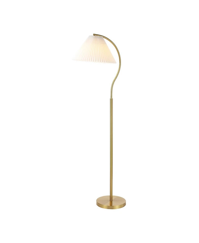 Jonathan Y Callie 22" Modern Glam Metal Arc Adjustable Head Led Table Lamp with Pleated Shade, Brass Gold/White