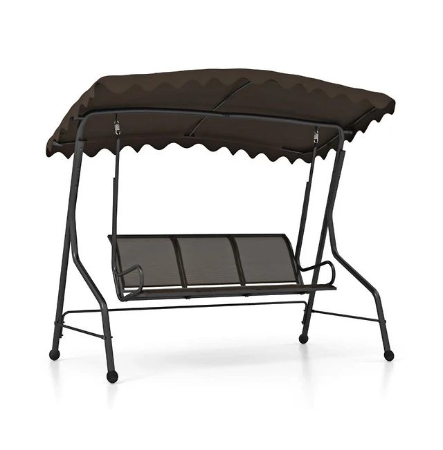 Gymax 3-Seat Outdoor Swing Porch Canopy Swing w/ Adjustable Shading Breathable Seat