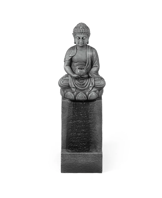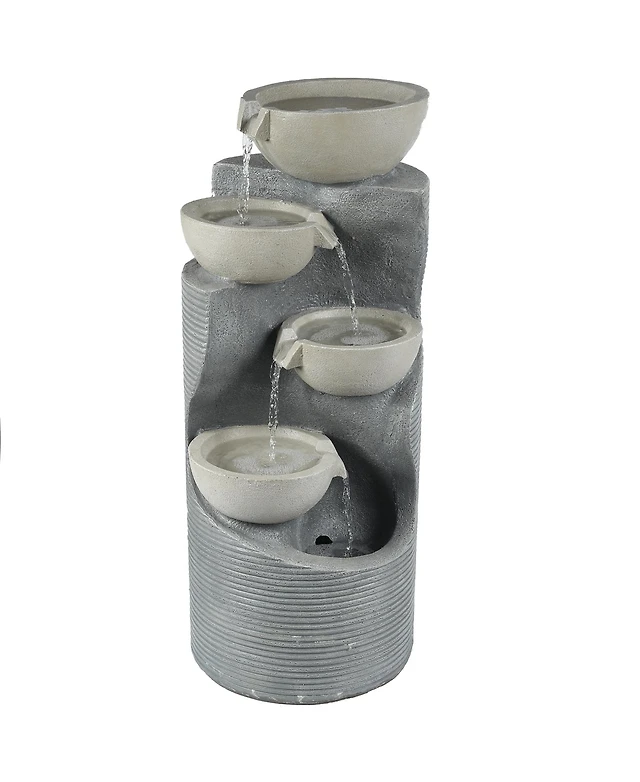 LuxenHome Modern Gray Resin Tiered Bowls Outdoor Fountain with Lights