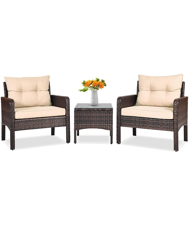Sugift 3 Pieces Outdoor Patio Rattan Conversation Set with Seat Cushions