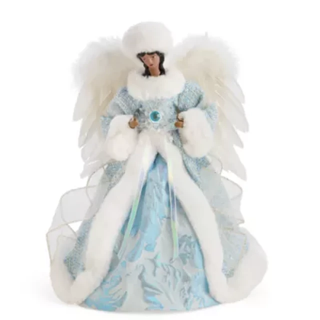 Northlight 12" Silver Lighted Fiber Optic African American Angel Christmas Tree Topper