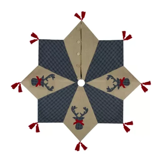 Northlight 48" Blue And Brown Burlap And Plaid Reindeer With Tassels Indoor Tree Skirt