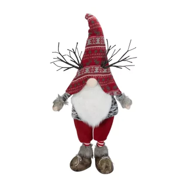 Northlight 30in Red Nordic Hat Standing Santa Christmas With Led Antler Christmas Gnome