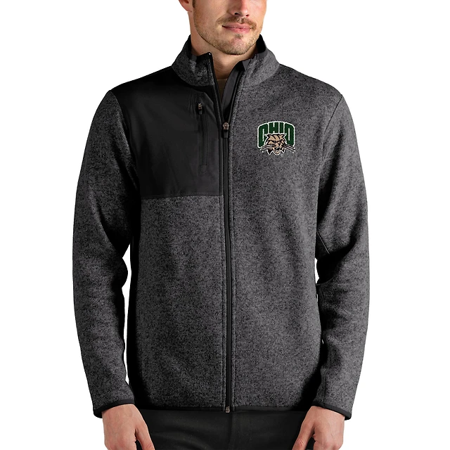 Men's Antigua Heathered Charcoal Ohio Bobcats Fortune Full-Zip Jacket