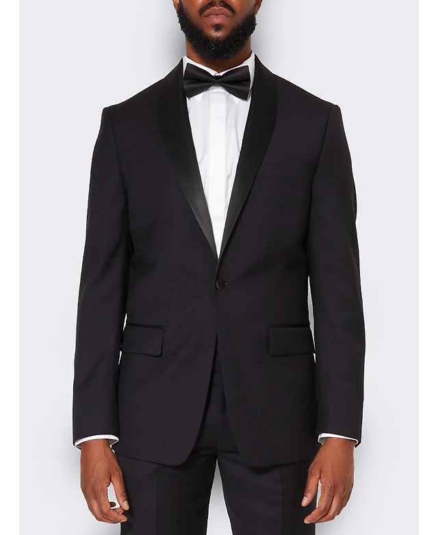 9tofive Men's Men s Black Wool Tuxedo Jacket with Satin Shawl Lapels