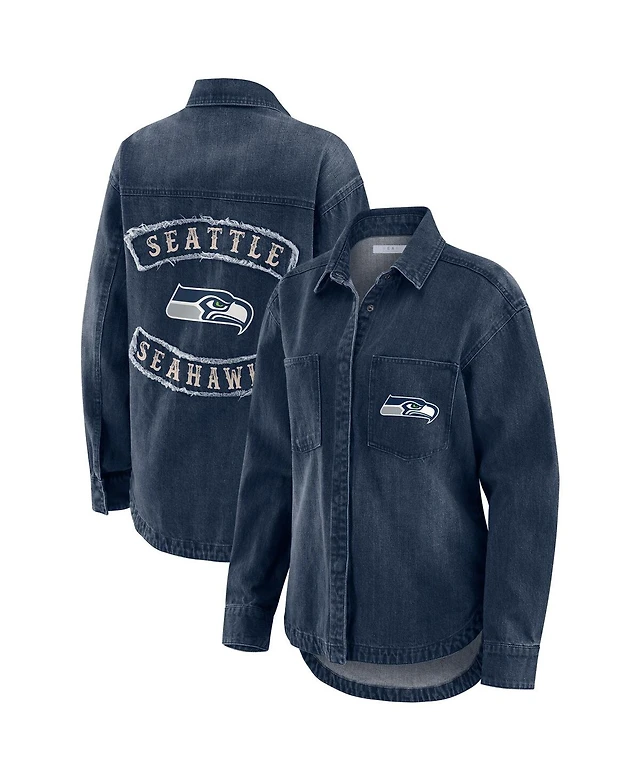 Wear by Erin Andrews Women's Denim Seattle Seahawks Washed Oversized Full-Snap Shacket
