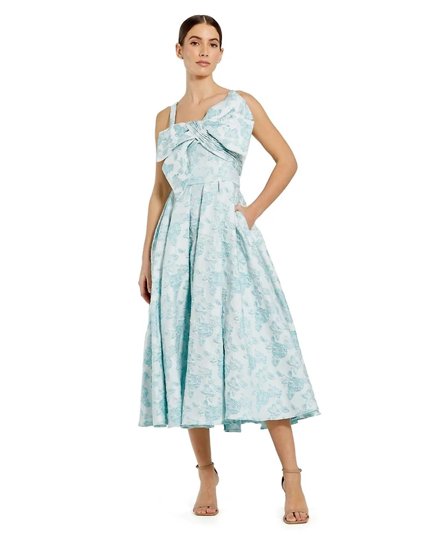 Mac Duggal Women's Sleeveless Large Bow Detail Floral Brocade Dress