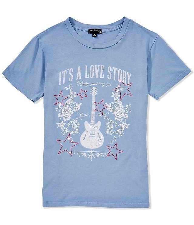 Originality Big Girls Short Sleeve It's A Love Story Star Print Graphic Oversized T-Shirt