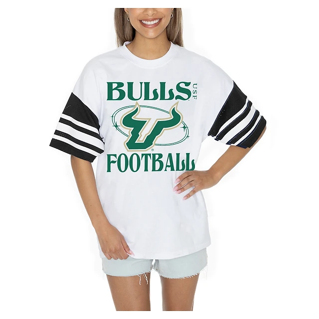 Women's Gameday Couture White South Florida Bulls Starting Lineup Contrast Sporty Heritage Oversized T-Shirt