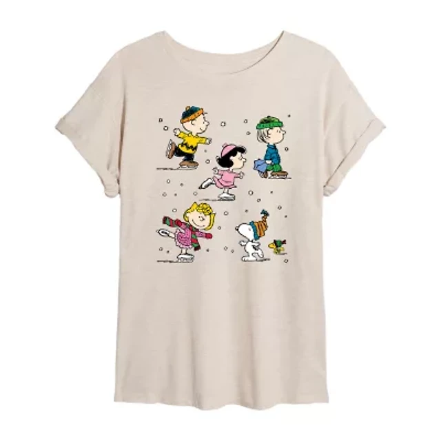 Peanuts Skating Tee Womens Juniors Scoop Neck Short Sleeve Oversized Graphic T-Shirt