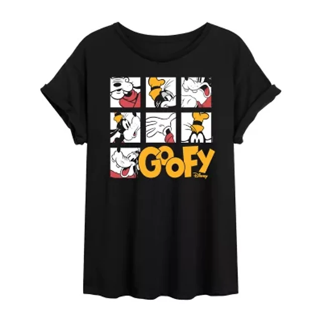 Womens Juniors Crew Neck Short Sleeve Oversized Mickey and Friends Graphic T-Shirt