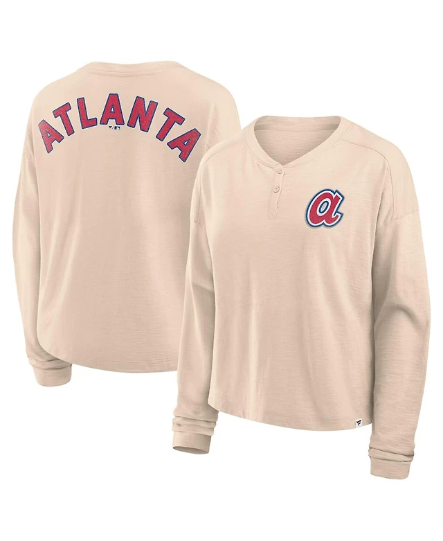 Fanatics Women's Tan Atlanta Braves Oversized Stadium Slub Long Sleeve Henley T-Shirt