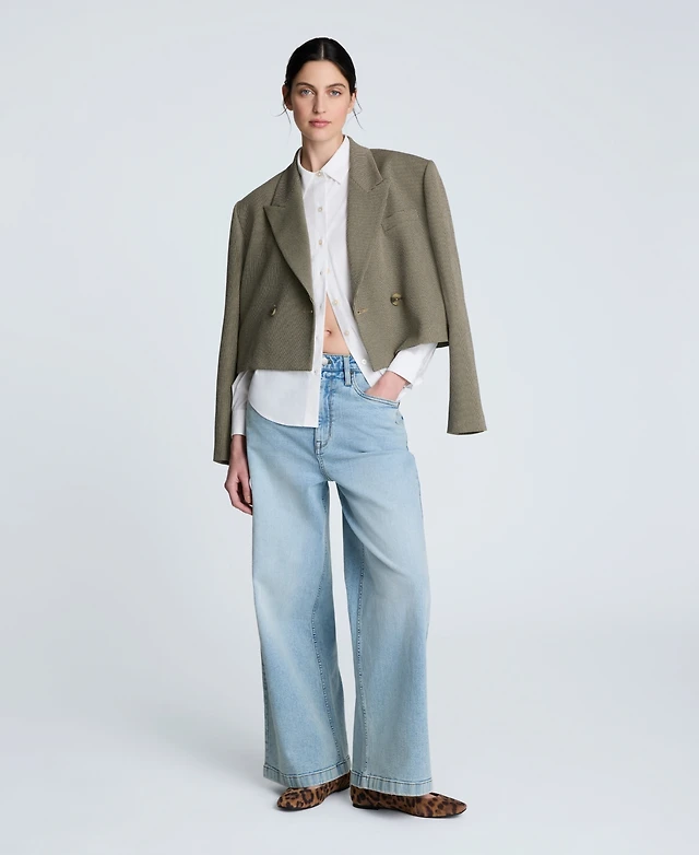 Wear by Erin Andrews Women's White Denver Broncos Cropped Center Stripe Dolman T-Shirt