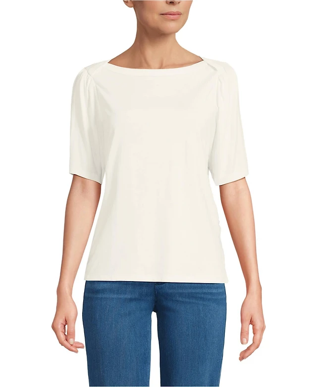 Lands' End Women's Short Sleeve Lightweight Jersey Gathered Shoulder T-Shirt