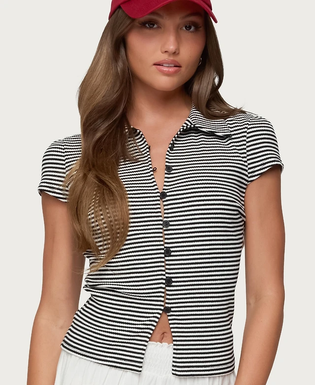 Edikted Women's Noga Ruffle Woven Button Up Top