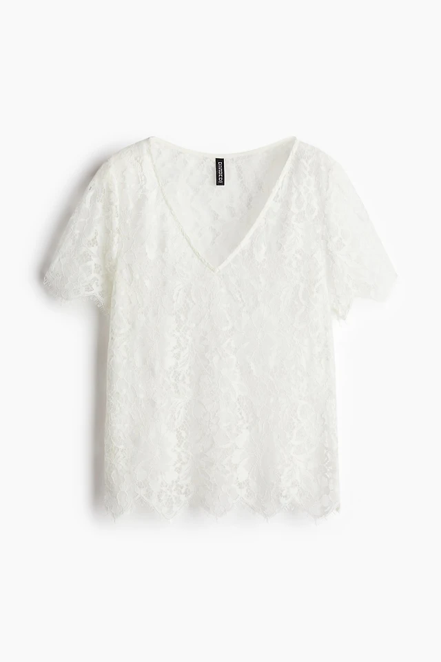Petite Jewel Neck Short Sleeve Lace T-Shirt