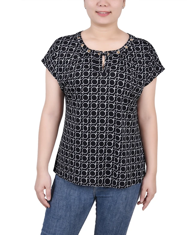 Karl Lagerfeld Paris Women's Collar Embellished Short Sleeve Top