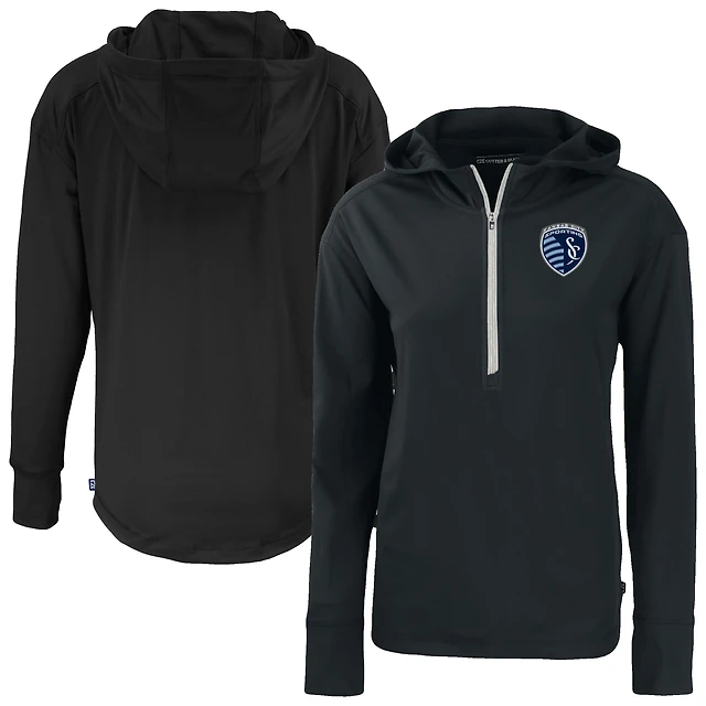 Women's Cutter & Buck Navy Sporting Kansas City Daybreak Eco Recycled Half-Zip Hoodie