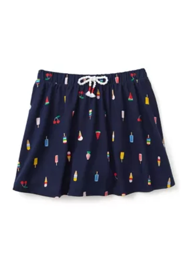 Girls 7-16 Detached Waistband Printed 3-Stripe Flounce Skort
