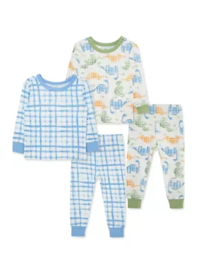 Girls Plaid Snug Fit Cotton Henley Pajamas