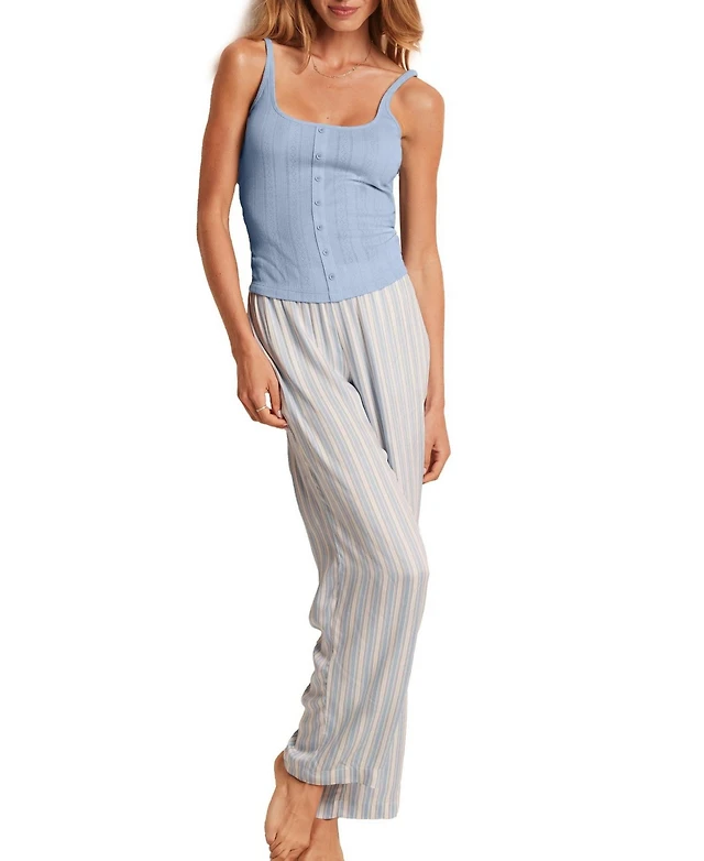 Eileen West Stripe Print Sleeveless Square Neck Knit Capri Pajama Set