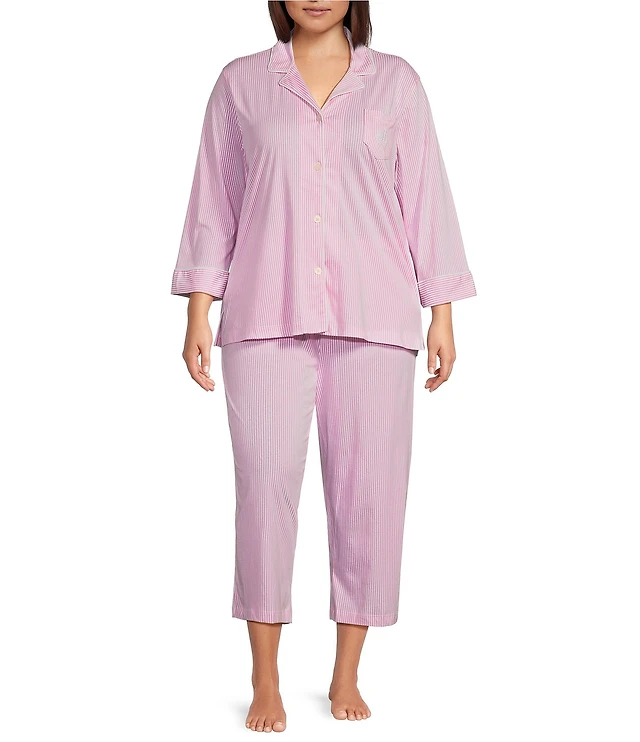 kate spade new york Plus Size Ladybug Print Short Sleeve Notch Collar Jersey Knit Cropped Pajama Set