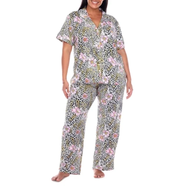 White Mark Womens Round Neck Long Sleeve 2-pc. Plus Pajama Sets