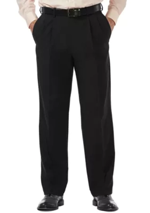 Haggar Men's Eclo Stria Classic Fit Flat Front Hidden Expandable Dress Pants