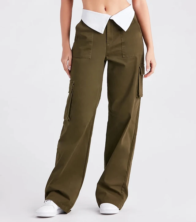 Sleek Straight-Leg Faux Leather Cargo Pants