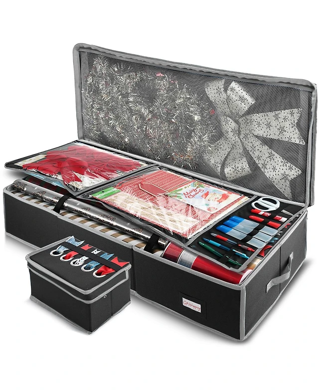 Premium Holiday Gift Wrapping Paper & Accessories Storage Organizer Box - Large