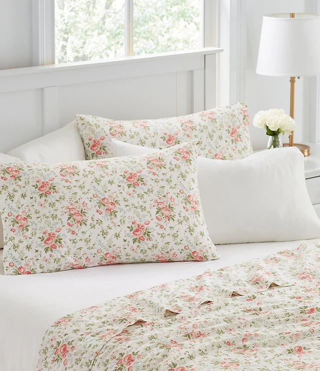 Laura Ashley 200-Thread Count Norella Pink Cotton Percale Sheet Sheet