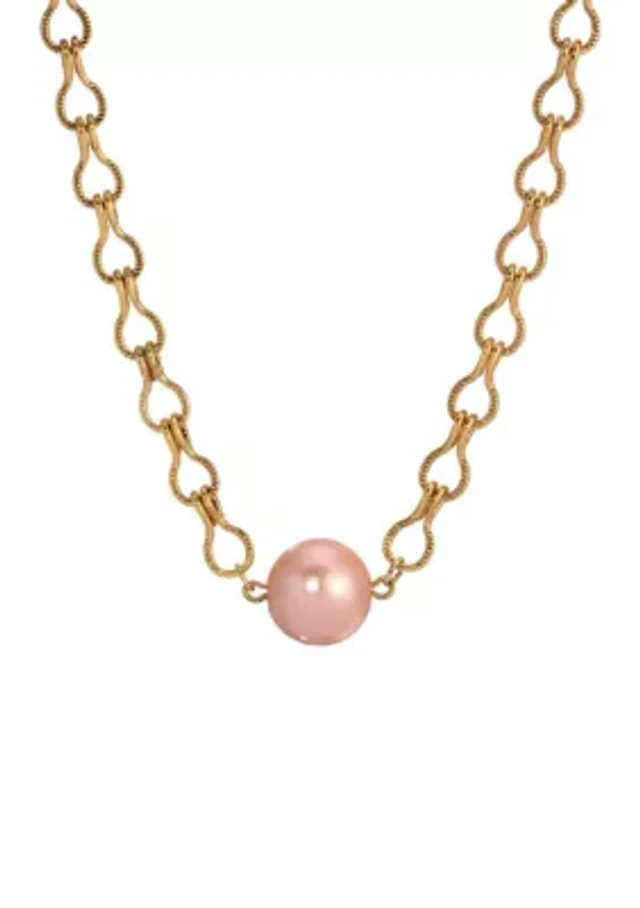 2028 Gold Tone Peach Cultivated Pearl Bead Necklace