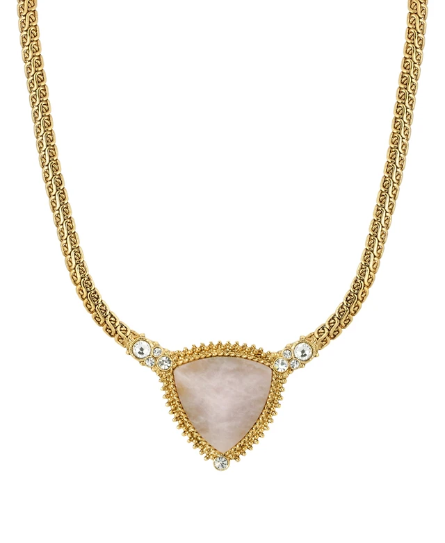 2028 Gold-Tone Peach Semi Precious Triangle Stone Necklace