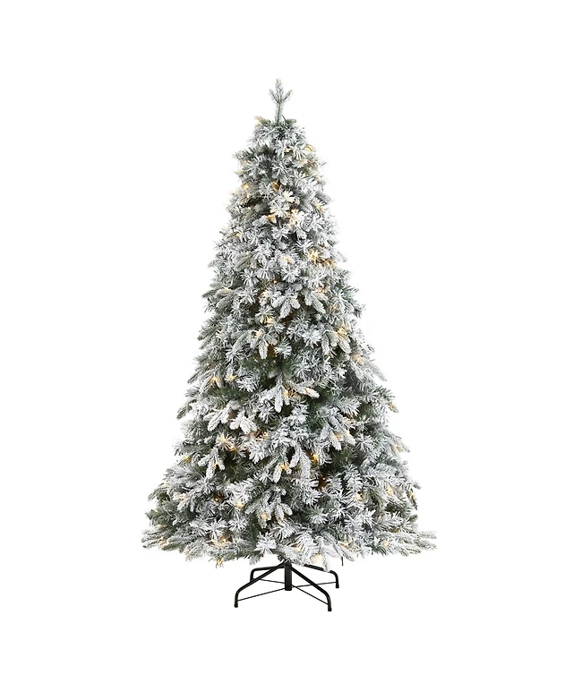 Nearly Natural Frosted 8 Foot Pre-Lit Flocked Pine Christmas Tree