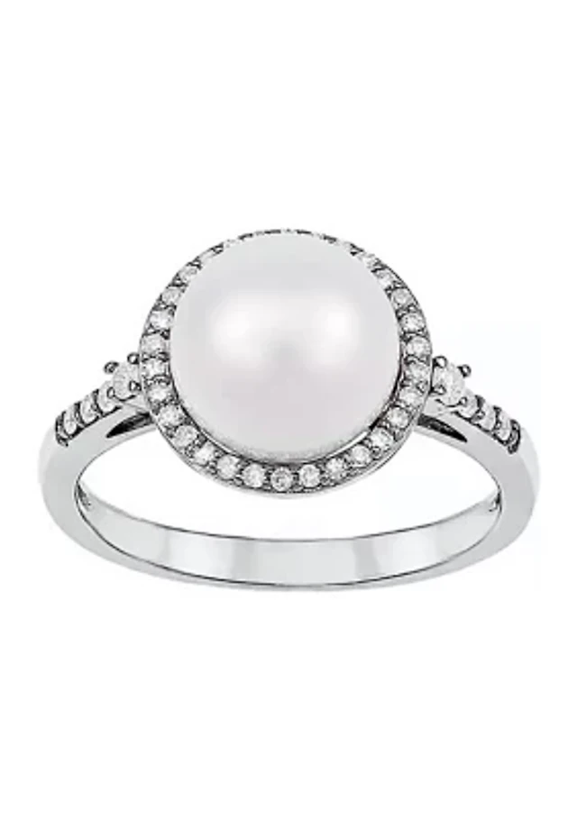 Honora Ming Freshwater Pearl (11-12mm) & Diamond (1/2 ct. t.w.) Statement Ring in 14k White Gold