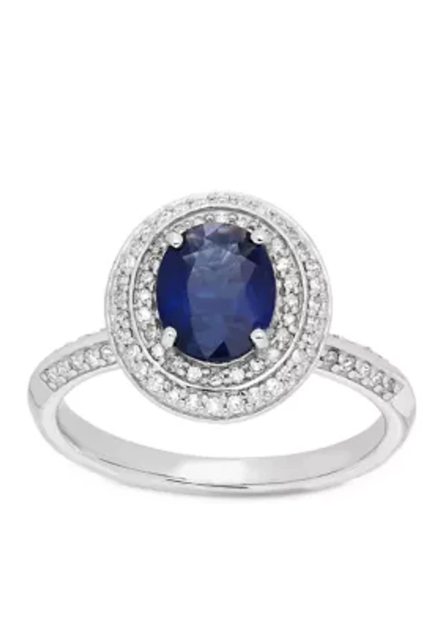 Lab Grown Sapphire and Lab Grown White Sapphire Ring in 10K White Gold