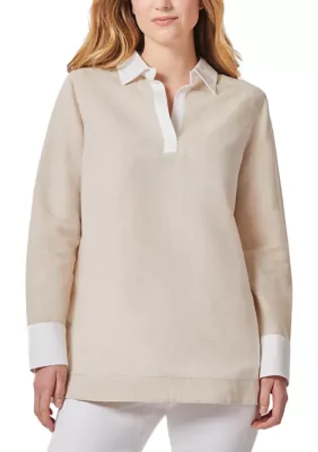 French Connection Women's Pascale Round Neck Mixed Media Poplin Top