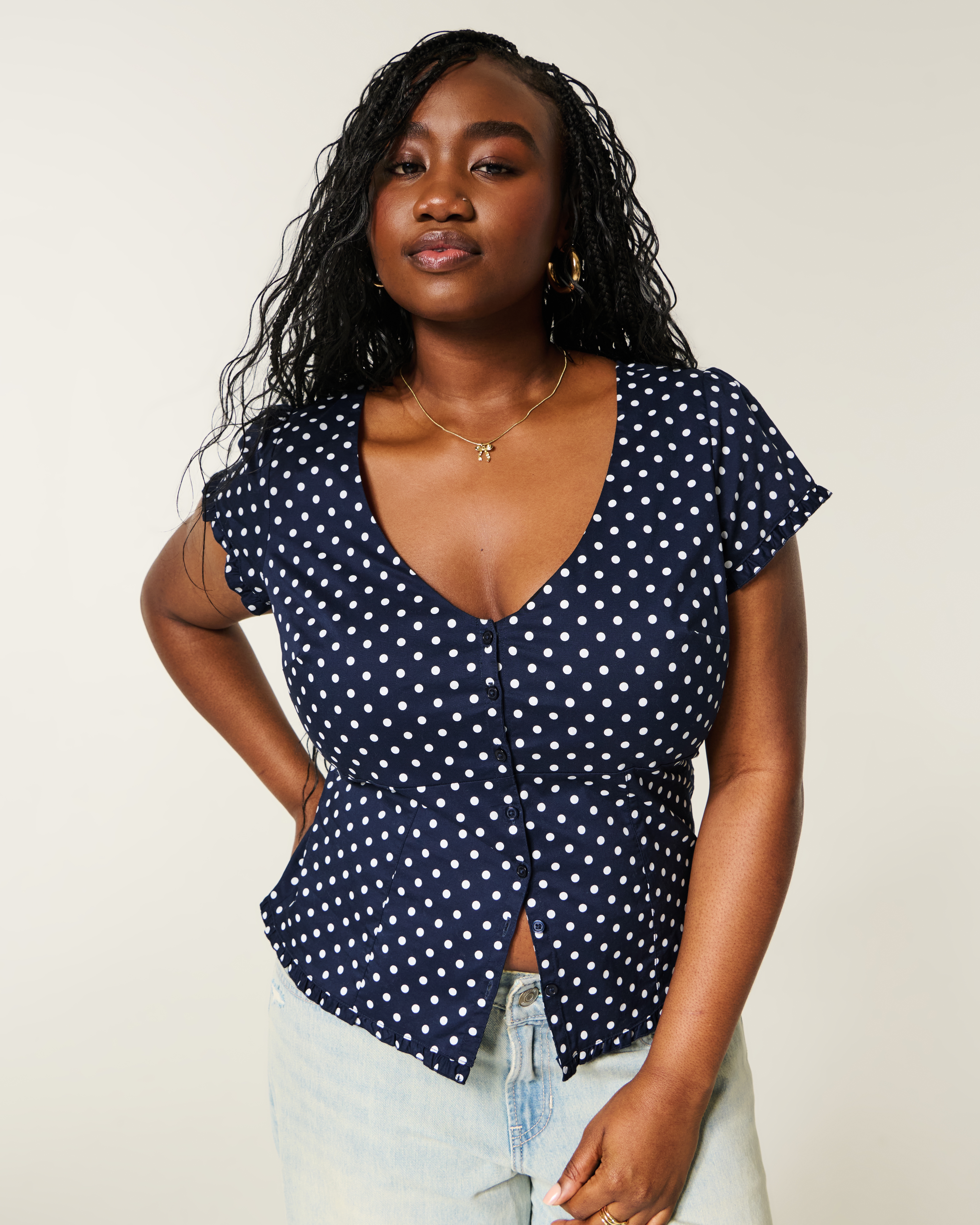 Easy Long-Sleeve Wrap-Front Babydoll Top