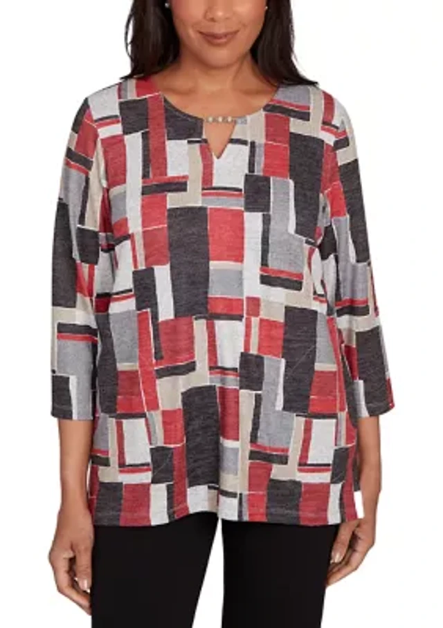 Petite 3/4 Sleeve Shark Bite Hem Printed Top