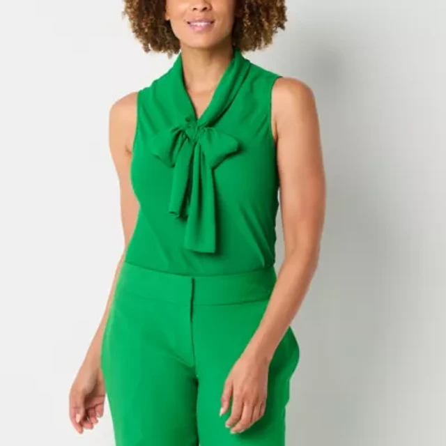 Black Label by Evan-Picone Womens Plus Split Tie Neck Sleeveless Blouse
