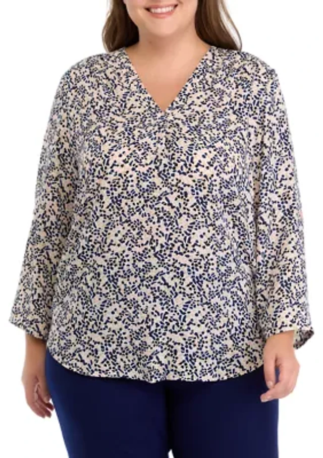 Petite 3/4 Sleeve Ruffle Neck Printed Top