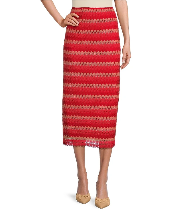 Every Coordinating Wool Blend Geometric Print Fringe Knit Mid Rise Pencil Maxi Skirt