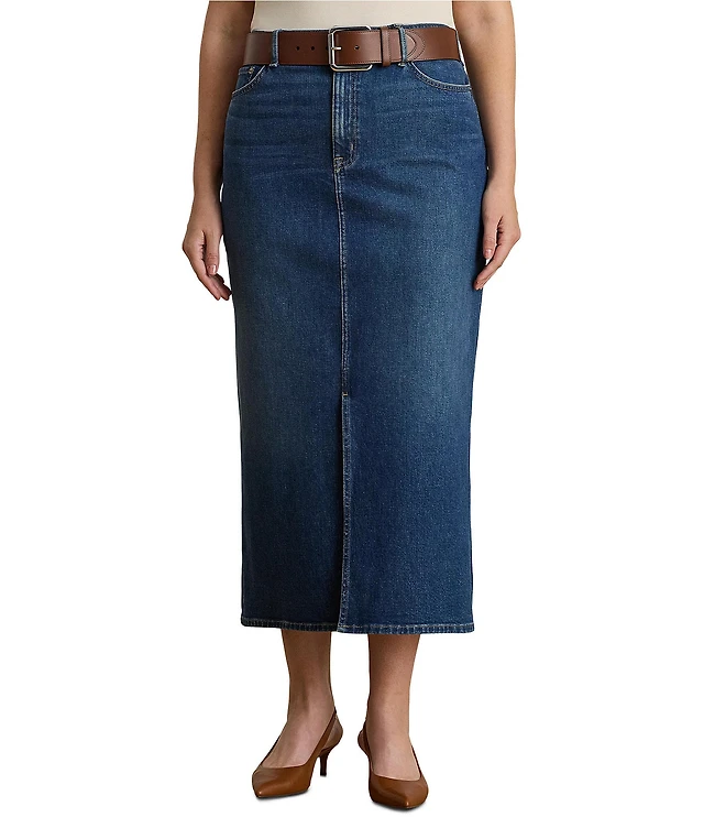 Lauren Ralph Lauren Sunset Indigo Wash Stretch Denim Mid Rise Pencil Skirt