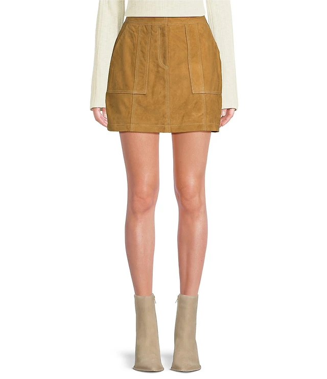 Gibson & Latimer Faux Suede Belted High Rise Wrap Pencil Cargo Midi Skirt