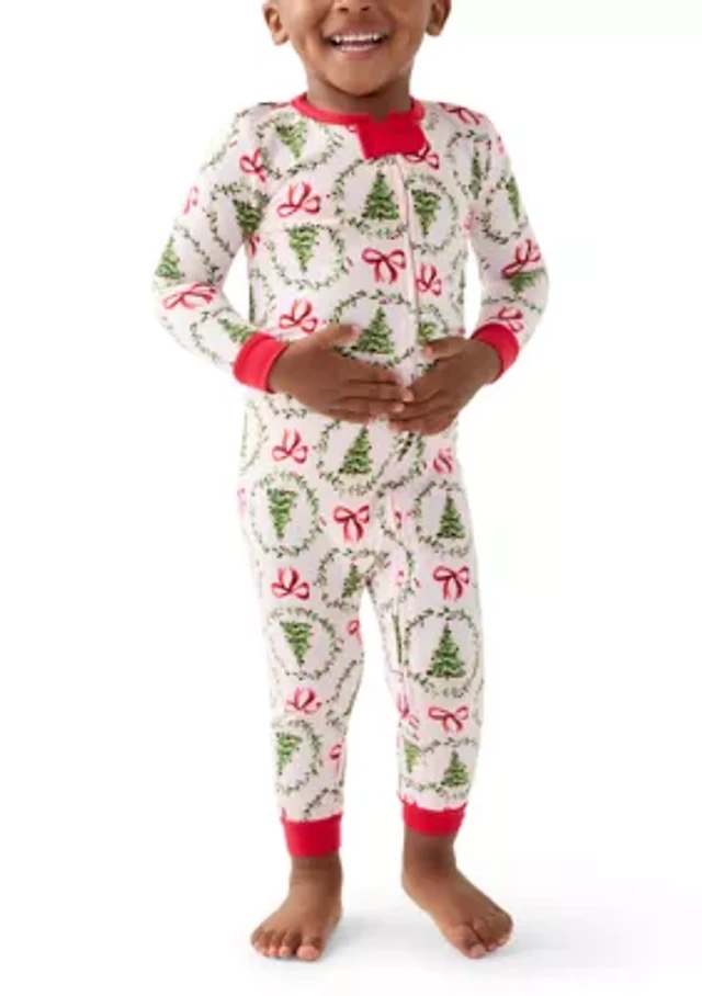 Unisex Baby Holiday Bows and Wreaths One Piece Pajama