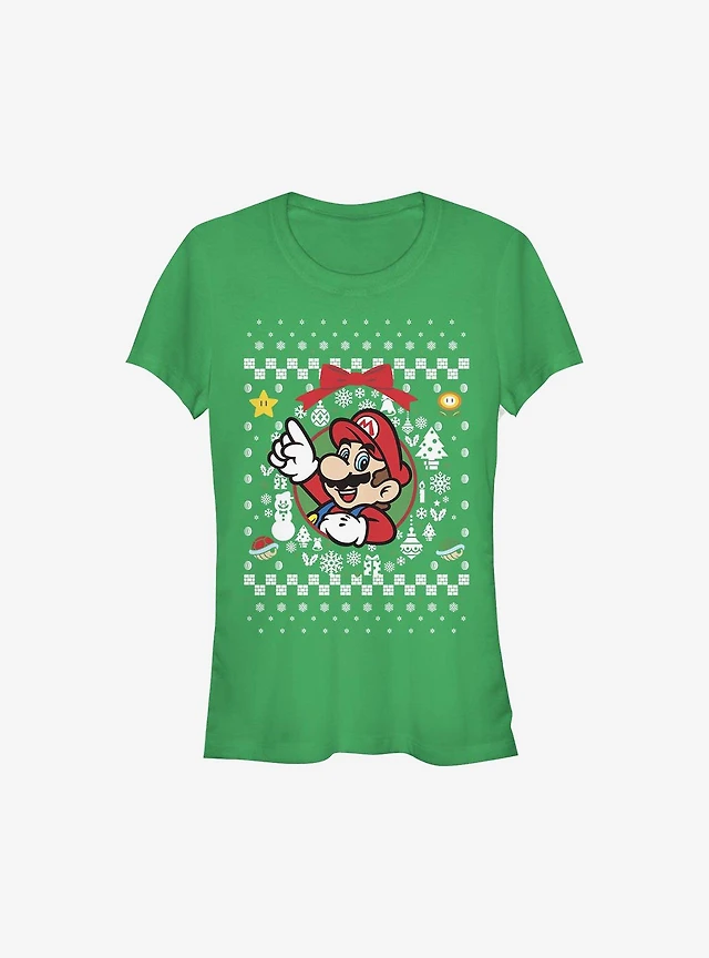 Super Mario Wreath Ugly Christmas Sweater Girls T-Shirt