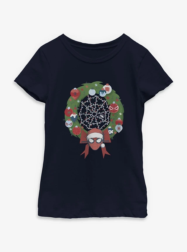 Marvel Spider-Man Christmas Wreath Youth Girls T-Shirt