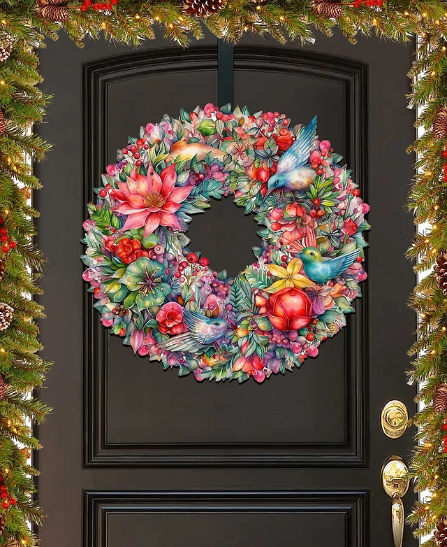 GreenishBlu Real Preserved Wreath Salal Brown, Red, Wheat, Sorghum, Dried Pink Ice Protea Flower, Baby Blue Eucalyptus and Yellow Yarrow, 22"