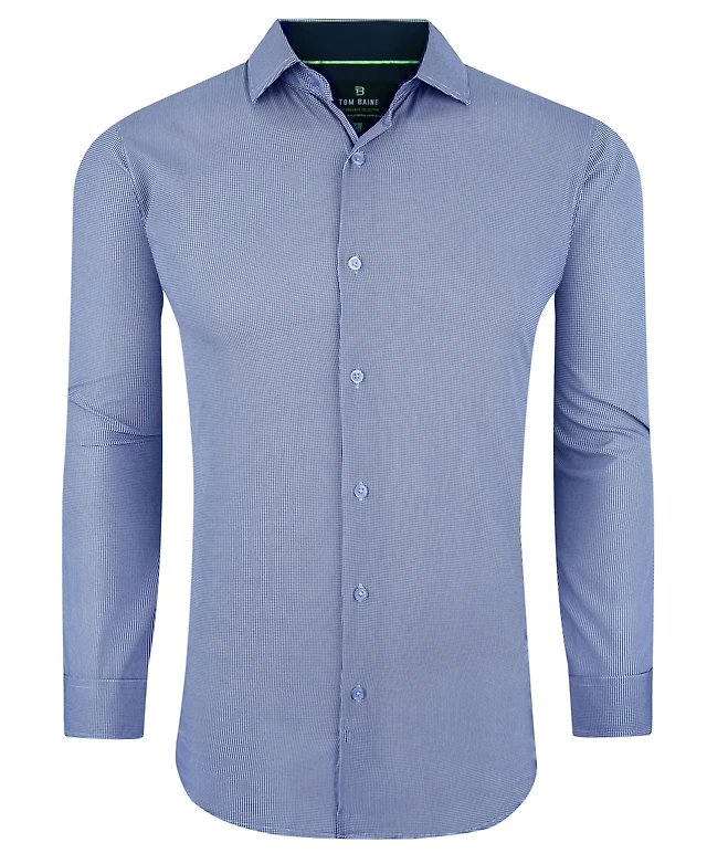 Tom Baine Men's Slim-Fit Performance Four-Way Stretch Mini Plaid Dress Shirt