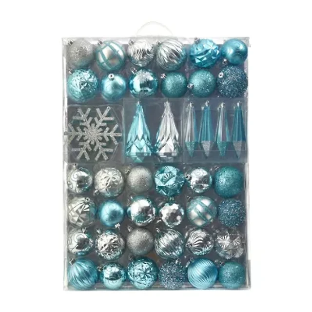 Northlight 72ct Turquoise Blue and Silver Shiny and Matte Glass Ball Christmas Ornaments 3.25-4"